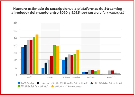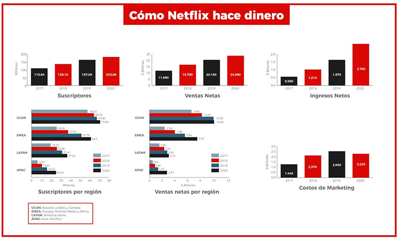 No es casualidad que el modelo de negocio de Netflix esté siendo replicado por sus competidores, ya que el gigante de streaming está creciendo exponencialmente, con unas ventas netas en 2020 de casi $25 000 millones y alcanzando unos beneficios de algo más de $2700 millones.