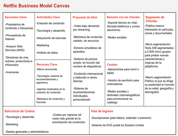 Para entender mejor el modelo de negocio de Netflix, adjuntamos el Business Model Canvas: