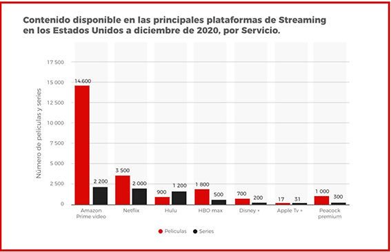 Netflix, desde 2017, decidió apostar seriamente por sus propias producciones. De este modo, construyen un catálogo exclusivo que les permite diferenciarse de sus competidores. Como consecuencia, Netflix acumulaba a finales de 2020 una deuda de $16 310 millones frente a los $2400 millones del 2015 [fuente].