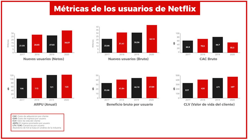 Para entender las claves de su éxito debemos atender a una serie de métricas indispensables para cualquier modelo de suscripción: el coste de adquisición por cliente (CAC) y el Customer Lifetime Value (CLTV), entre otros.