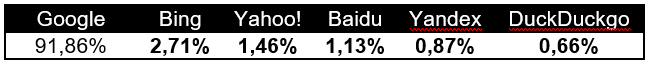 Google utiliza sus propios canales para promover sus servicios, ya que cuenta con el 92 % de cuota de mercado de los motores de búsqueda.